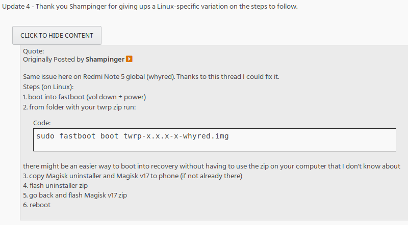 Got my Pixel working again with no fuzz following the Linux instructions from Bootloop after magisk update Thanks guys! |