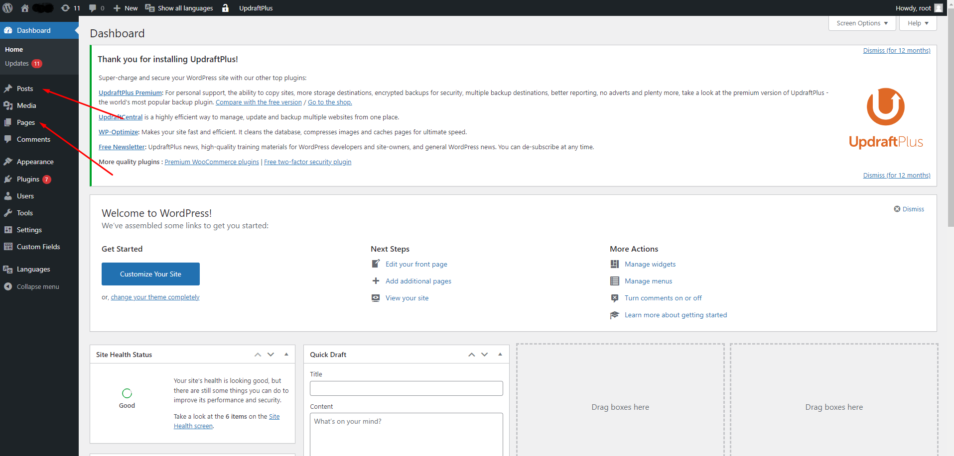 4. Go to the site admin panel and add a new post or site page. # Or go to the video page.