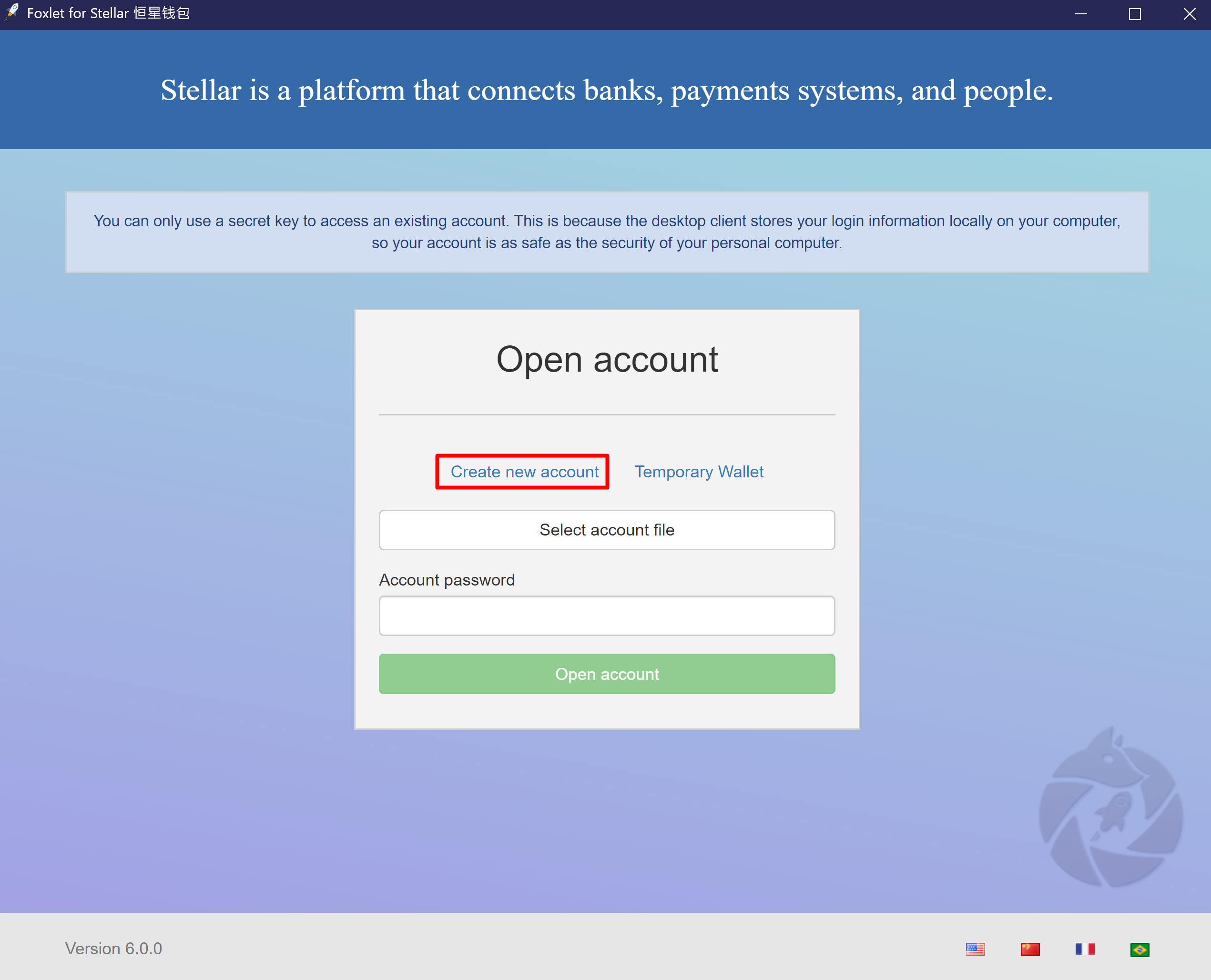 - After you need to save the file with the crypto wallet cipher on the PC, this file will be used during each login to the created Stellar crypto wallet.