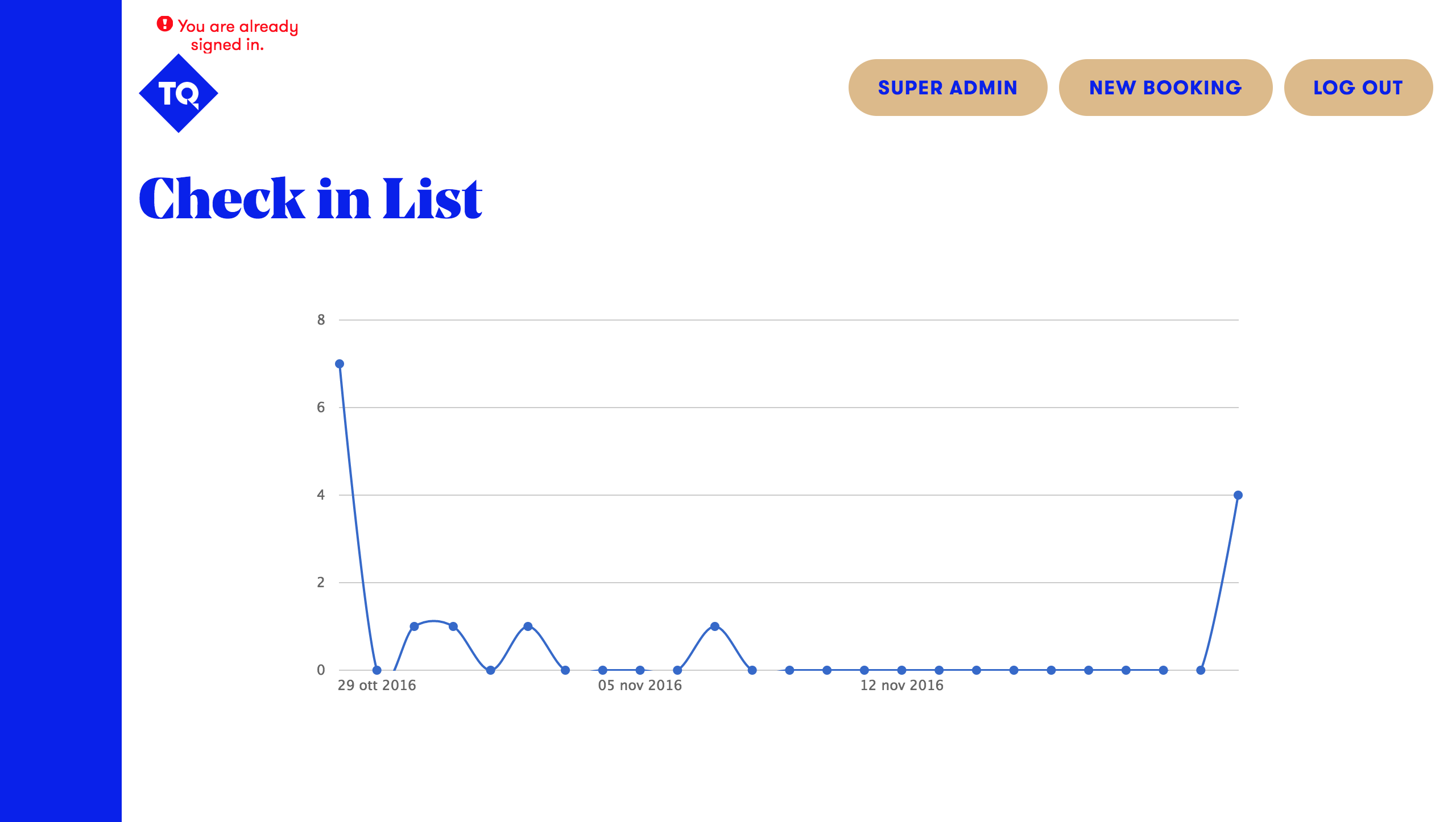 This project was realized during the real world assignment in Codaisseur Traineeship. This product is a check-in system for visitors. It allows the company to manage and register all the visitors in their building. In the following sessions we are gonna describe the features that you can use with this tool.