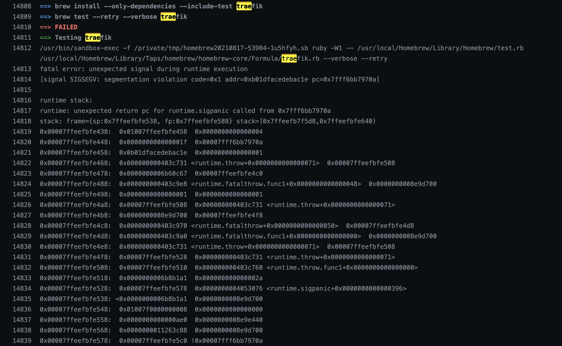 @mpl @thaJeztah aand @ldez from the logs on the golang brew upgrade: this is definitely the x/sys issue. Upgrading x/sys as mentioned here: golang/go#46763 |