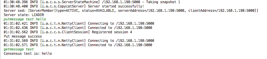 Tested by manually starting a consensus server then setting a message and getting it as you can see below