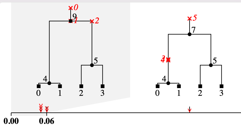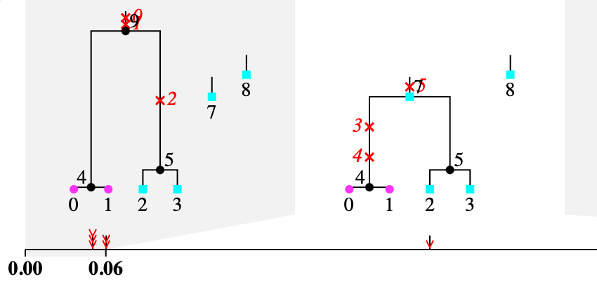 This took a bit of reworking to include mutations above the root. But worth sorting as this will impact implementing a Y-axis scale, which we can now do by looking at and this for a log time scale: |