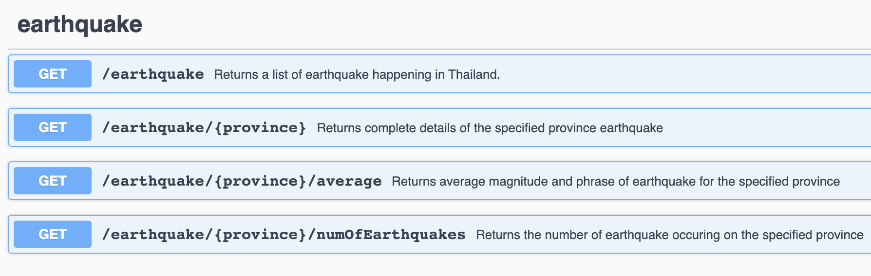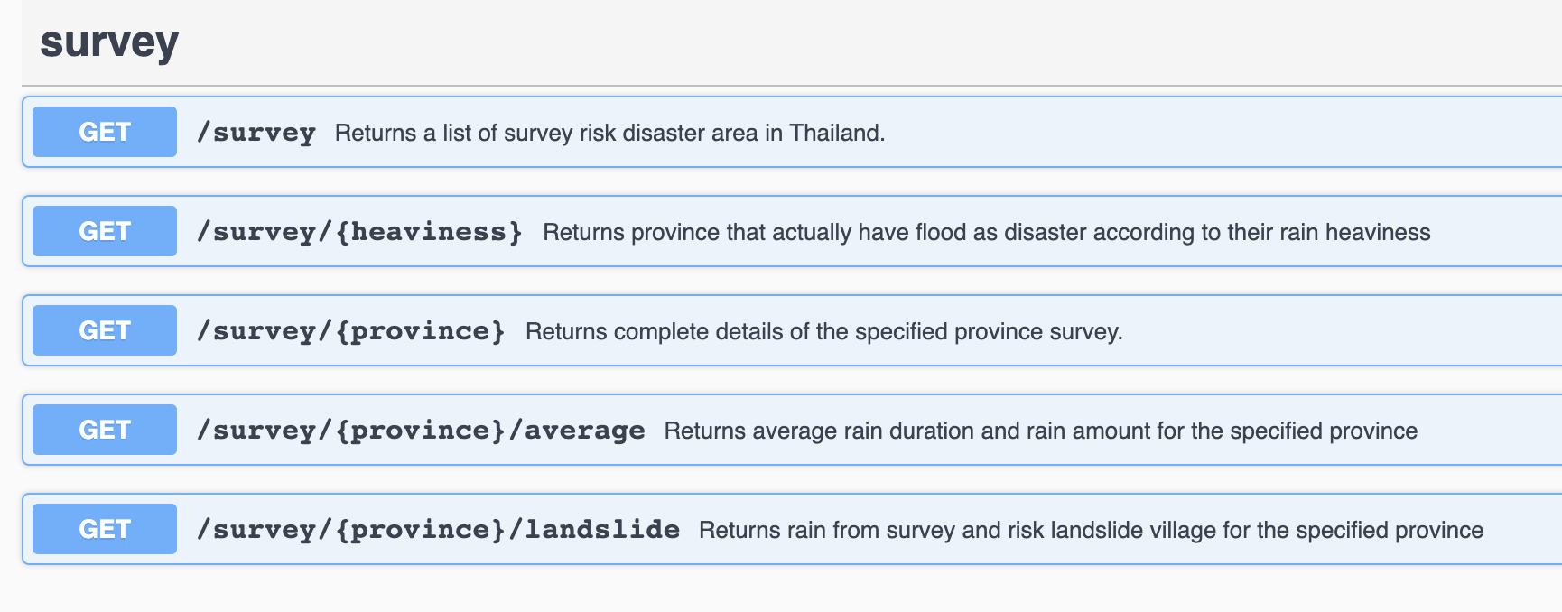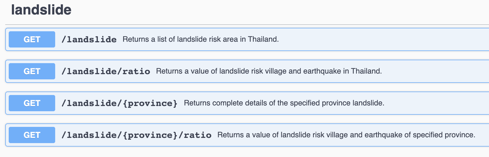 This API provides information about common natural disaster happening in Thailand. It's separated into 4 categories: