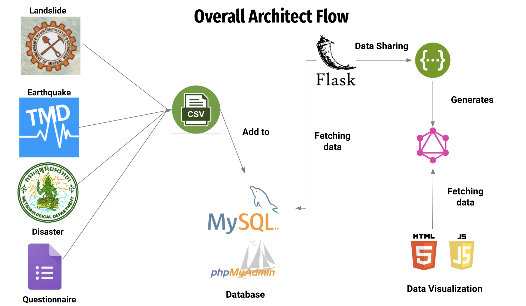 Thailand is one of the country that face many natural disasters. However, these data concerning the topic is not-well format, hard to access, and sparse. Many natural disaster such as landslide, earthquake, fire are neglected. That’s why we come up of a way to collect those datas in the form of API, for easy usage and access