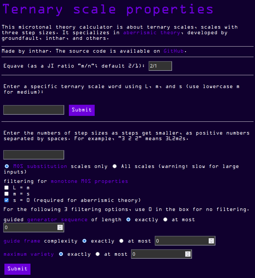 A microtonal scale research app chiefly dedicated to ternary scales (scales with three distinct step sizes). It focuses on aberrismic theory, developed by groundfault, inthar, and others.