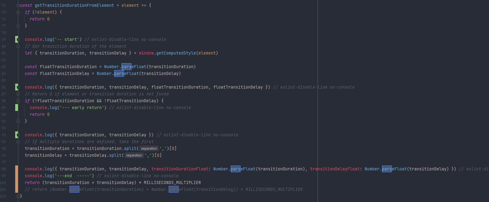 On first view, I was ready to approve, but I got in seconds thoughts. Explanation: According to https://developer.mozilla.org/en-US/docs/Web/CSS/transition-duration, So I changed offcanvas css to : Built the assets and added some hard-way debug helpers Browsed to my local documentation offcanvases and opened one.... Unfortunately, it can bee seen that the results without the However, @yyjiugui your effort is much appreciated, so please do not hesitate to suggest future improvements |