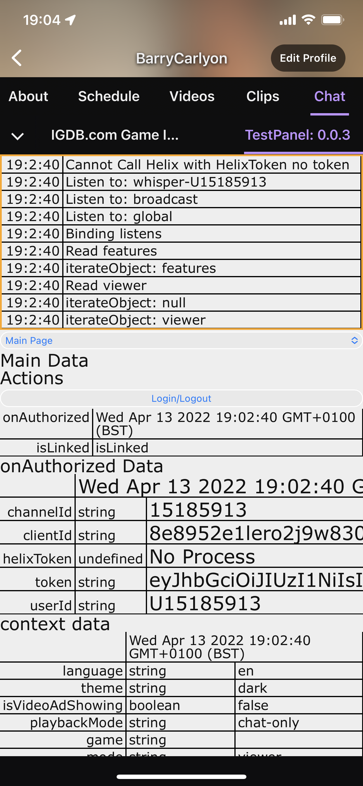 helixTokento make calls to the Twitch API from the front-end. However, this token is not passed in the Android app (yet).How to reproduce