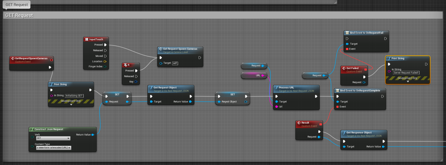 I am using the VaRest plugin in the way shown in the attached image. On my laptop in both Mac OS and Windows it works fine and I get the response, however when I launch the project on my iPhone it does not. I've trying to debug it using print statements and I can see that it stops working right after the 'Bind Event to OnRequestComplete' Node. Any help would be appreciated!