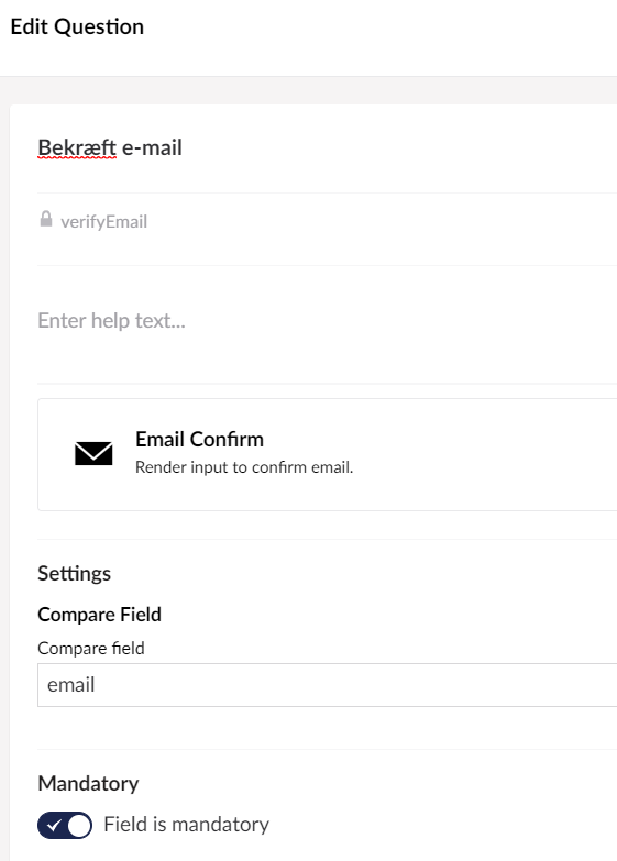 emailandverifyEmailfields doesn't match - otherwise it doesn't add the modelstate error.I wonder if this is possible to archive as well with a custom field and a setting to specify field to compare e.g. using alias