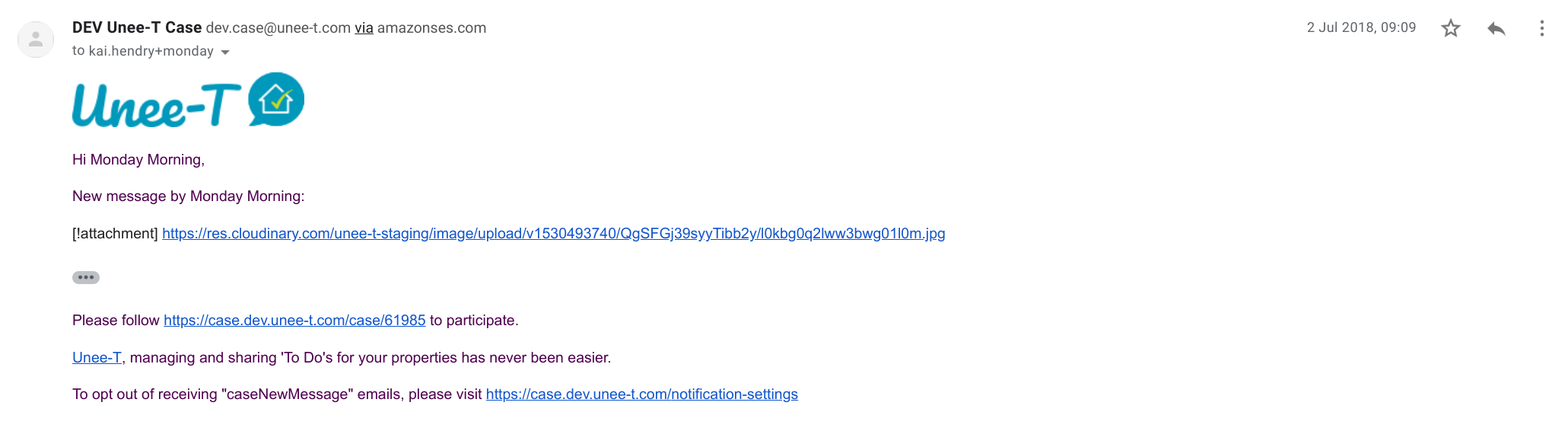 Could be re-written in body of email to render the Attachment image in the email https://github.com/unee-t/frontend/blob/master/imports/email-templates/case-new-message.js