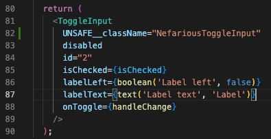 Sorry for the delay reply here Jason! I am good with testing out this paradigm prop here. I like that it is more easily greppable to eventually be converted to custom DS component wrappers once more established patterns evolve. Also a fan of increasing the barrier to overriding styles (although it's still possible to set .ParentClass .ToggleInput