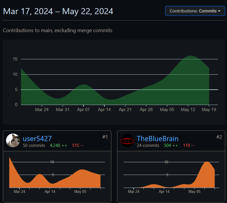 Arnas - TheBlueBrain 504 pridėjimai (eil.). 110 panaikinimai. Viso 614 pakeitimai. ~ 7 val. darbo. Pagrindinės užduotys: backend sukūrimas (P1).
