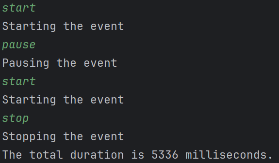 startEvent,pauseEvent,stopEvent,comment.
