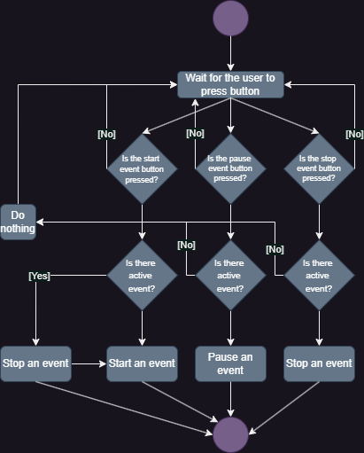 start,pauseirstopmygtukais nustato veiklos būseną. - Naudojantis