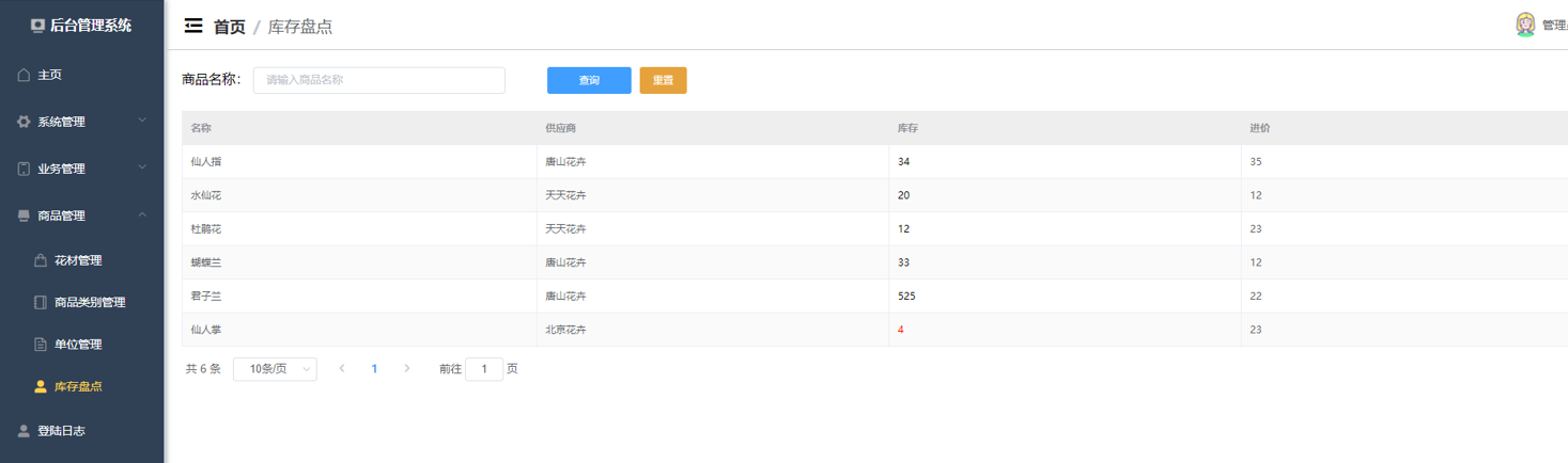 - 库存盘点:盘点所有花材的库存,提醒采购员及时采购。
