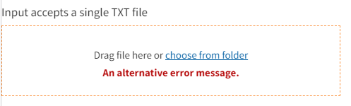 New in USWDS@VERSION. You can add a custom error message to USA File input by adding the