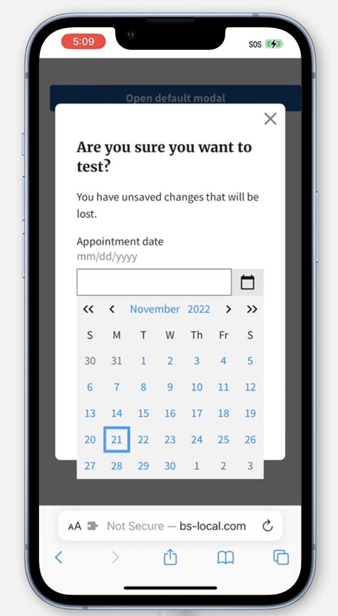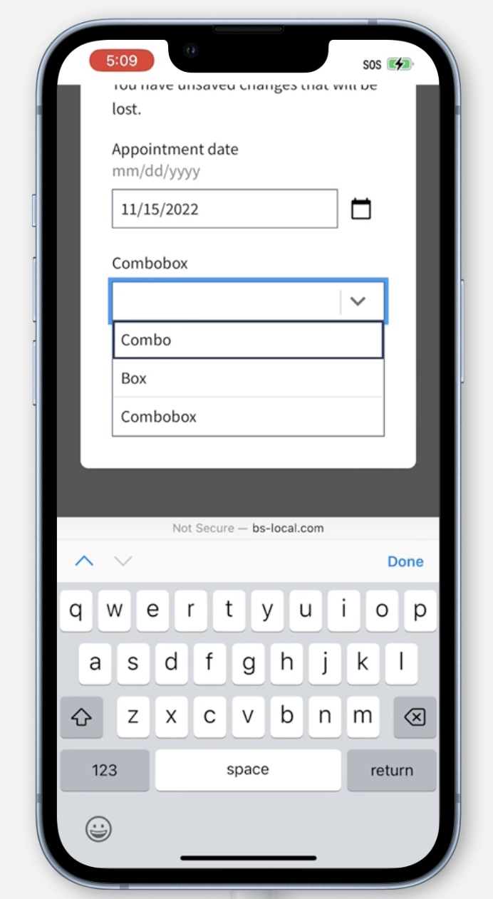 stopPropagationfunction and created a modal with two form elements within it. After testing on various browsers and versions of mobile safari, it appears to work as expected.Browsers Tested: