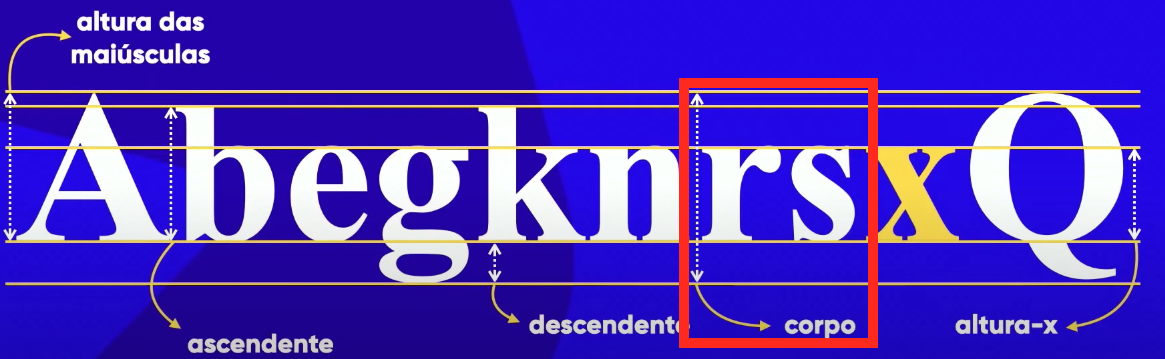 A anatomia de uma fonte é de suma importância, visto que a o tamanho de uma fonte é dada pelo tamanho do corpo da fonte, que é: