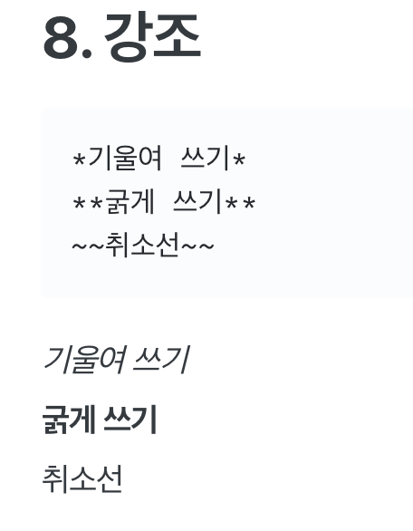 <img width="228" alt="스크린샷 2020-03-10 오전 11 18 51" src="https://user-images.githubusercontent.com/11283675/76273544-74711680-62c1-11ea-87bc-1f32f83ac3f1.png"> ~~ ~~ 요 문법인데요 아무래도 이상해서 처음엔 웹 브라우저나 OS 문제인가 싶었지만... 스크린샷처럼 취소선이 제대로 표시가 안되네요....ㅠ