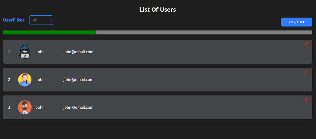 in this tutorial did some user cards which have details about username, mailId and userimage. user can add newuser and delete existing user from list. users list is managed using svelte writable stores. Also added some svelte animations and transitions for visual presentations.