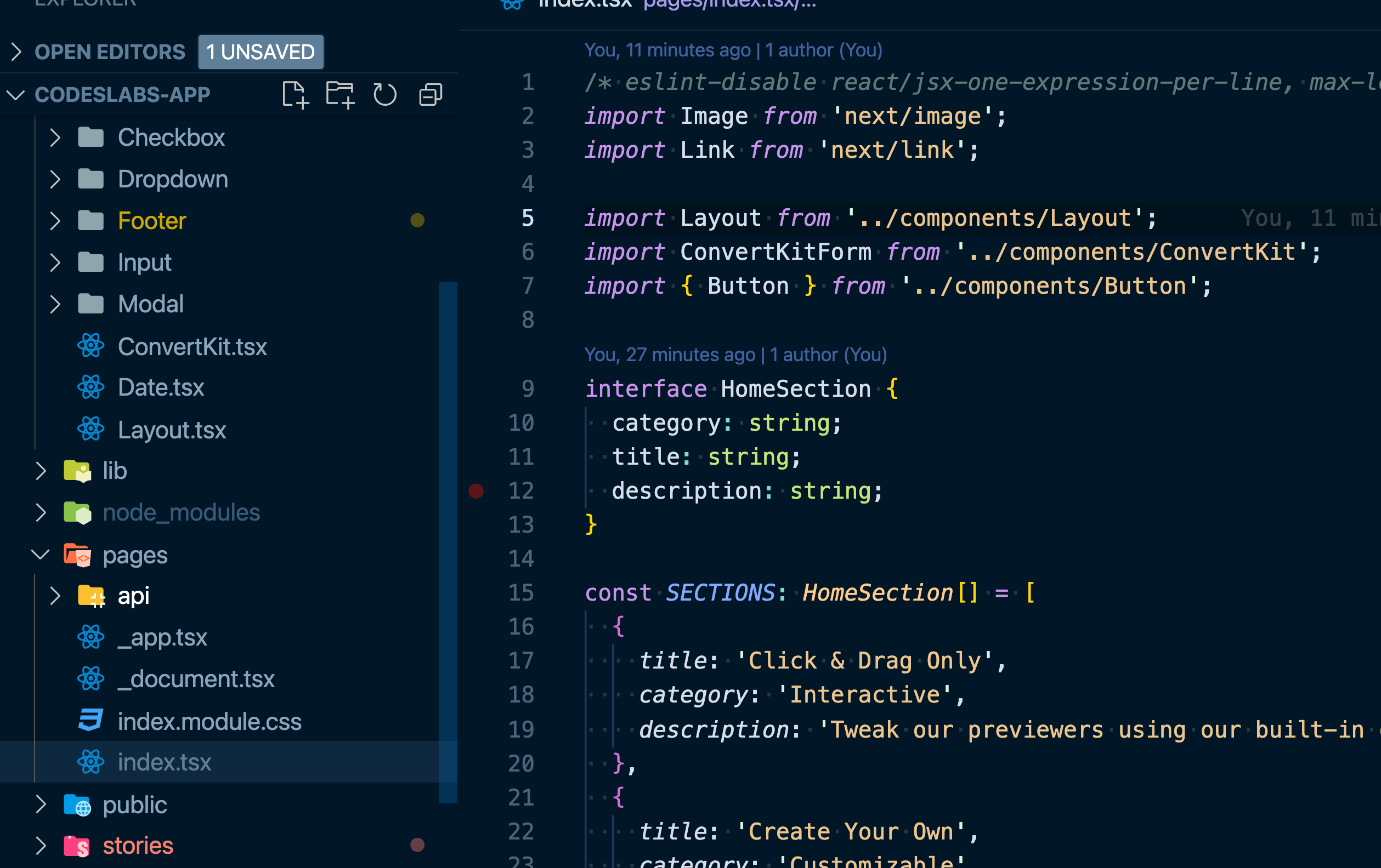 My file tree and index.tsx file