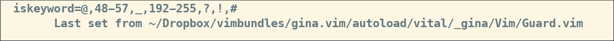 例: 手元のvimでfiletype=vim なファイルで :verbose set iskeyword? みると