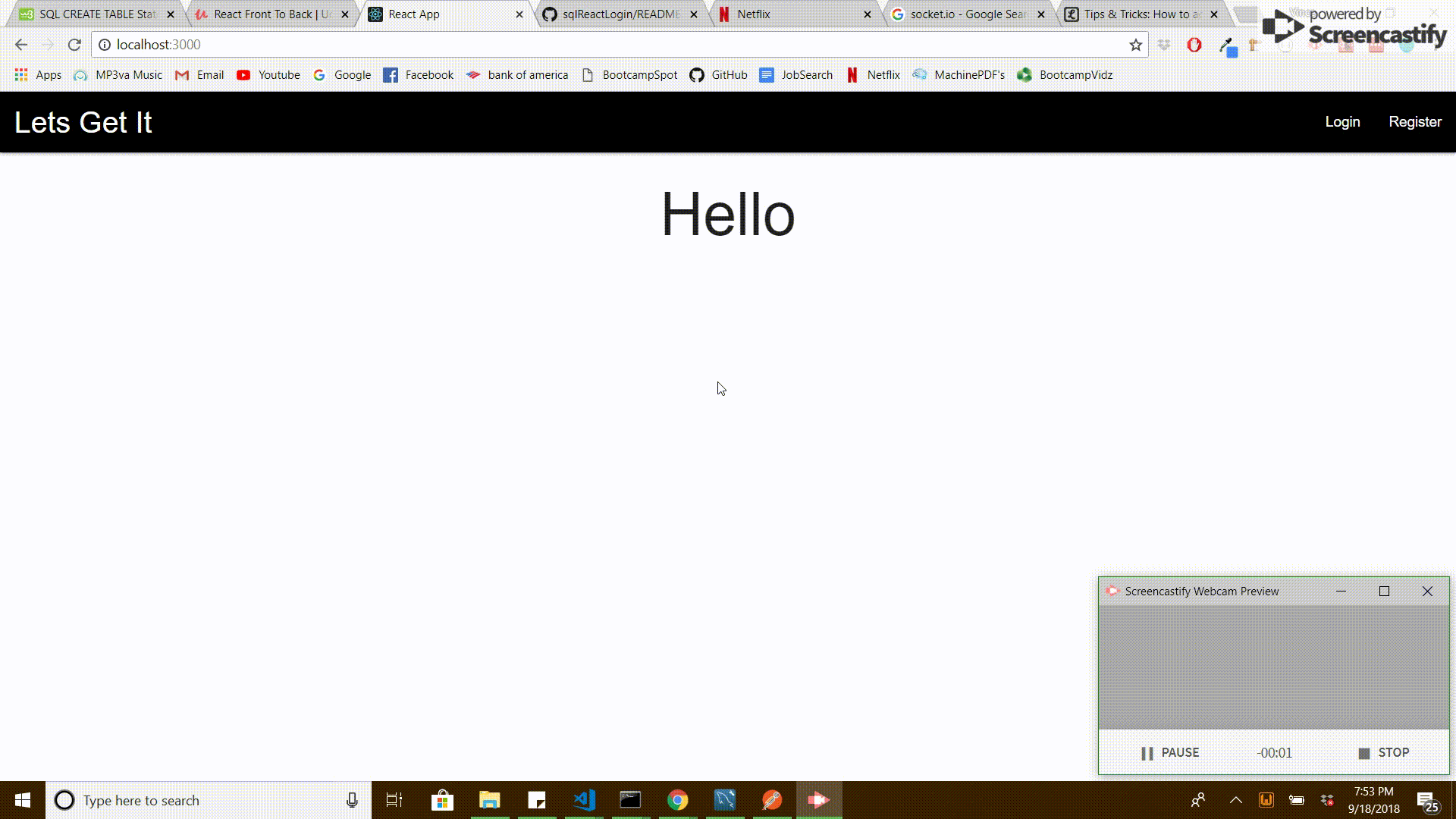 This is a simple application I built to practice some React, SQL, node. I enjoyed learning to use bcrypt and exploring different methods of user authentication. I plan to build upon this basic model to create more complex applications.
