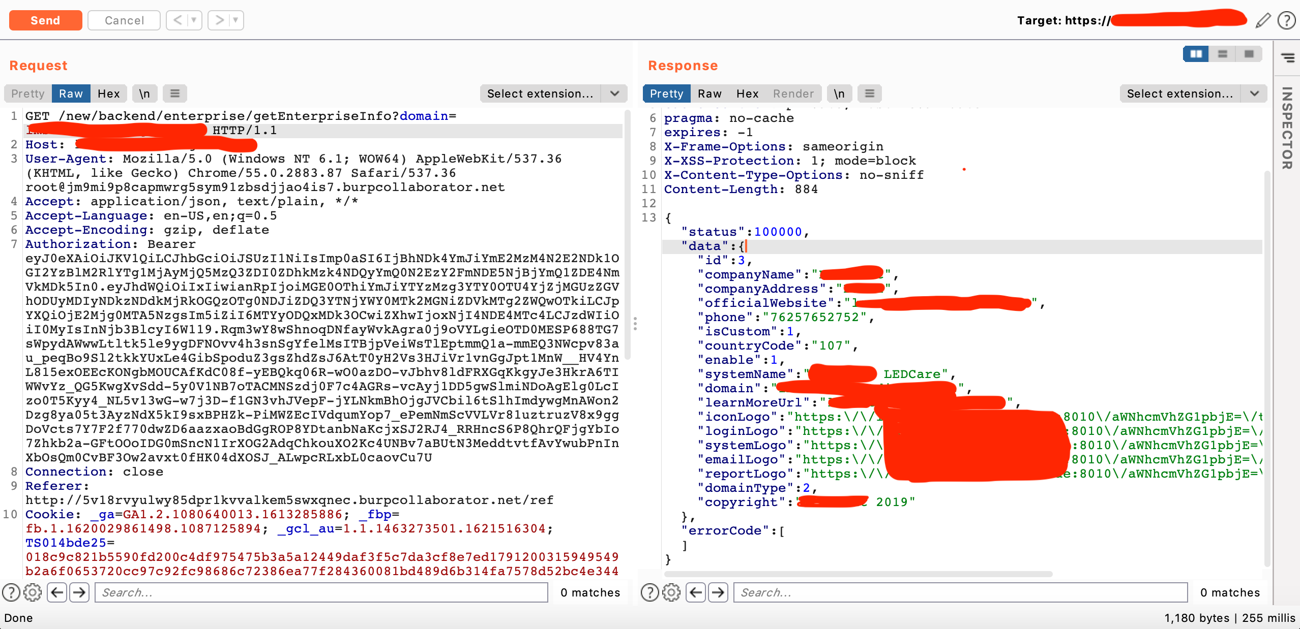 Visit Endpoint given in POC with a restricted role( a role with only User view privileges) User account : (GET /new/backend/enterprise/getEnterpriseInfo?domain=xxx)