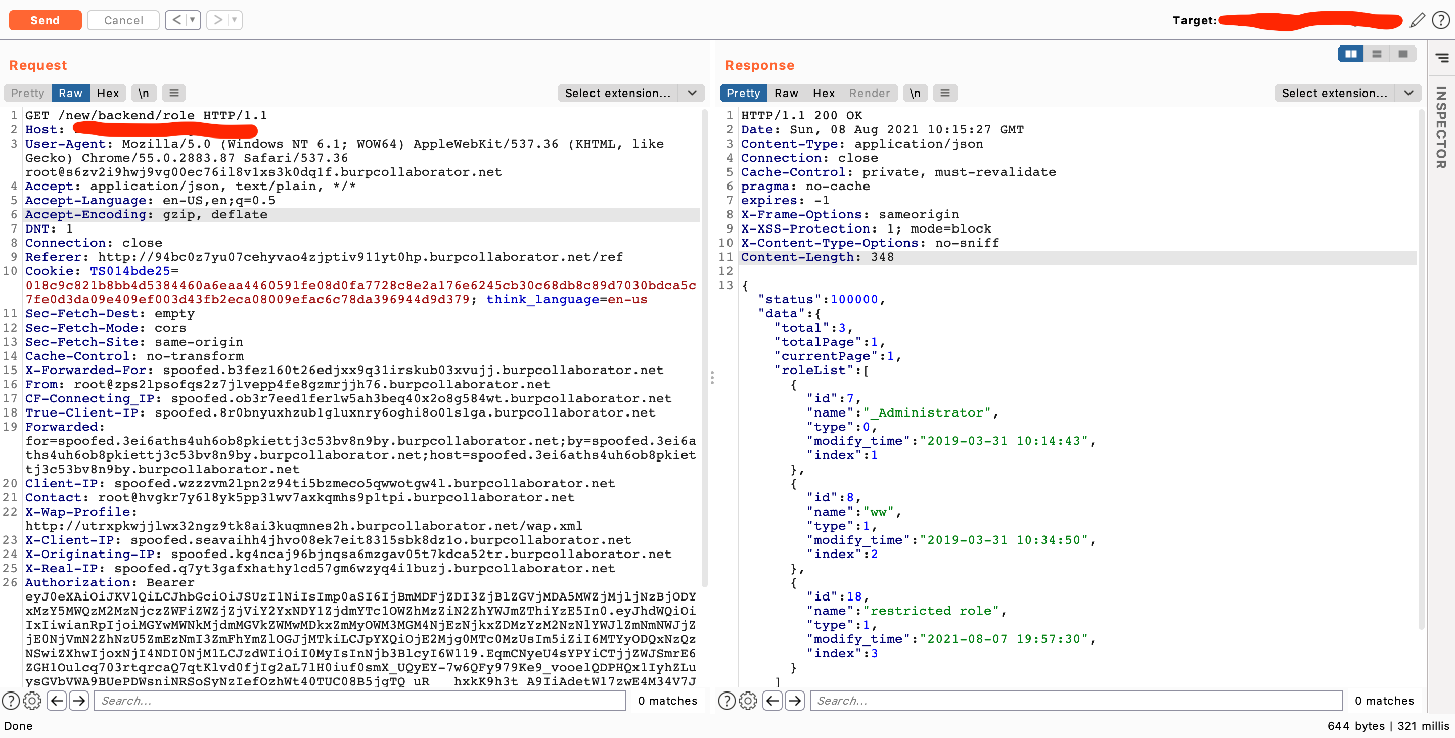 Visit Endpoint given in POC with a restricted role( a role with only User view privileges) User account : (GET /new/backend/role)