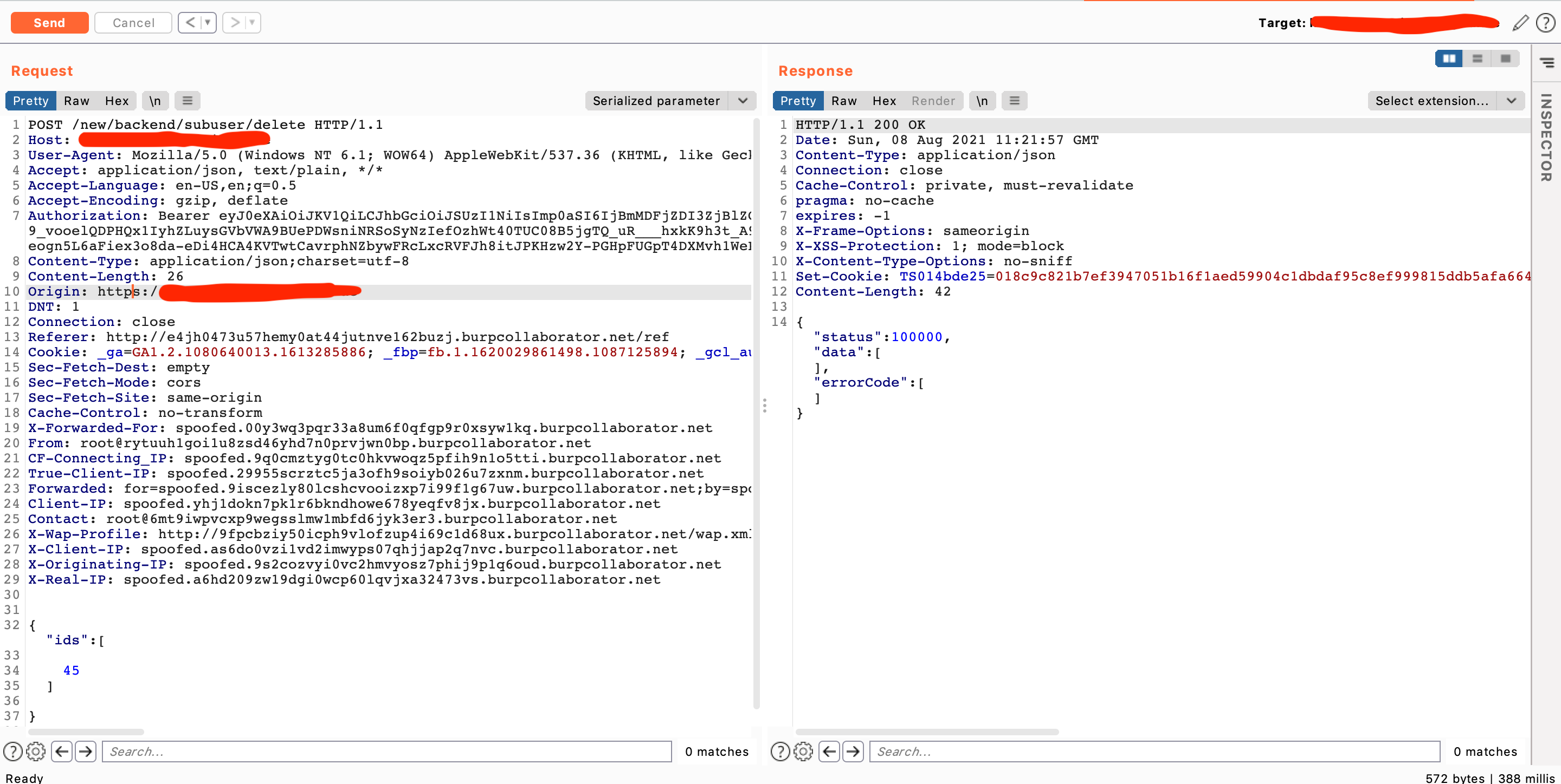 Apart from the Information disclosures dicussed above the User account with restricted role had the ability to delete Users as well from the platform, see the below POC: