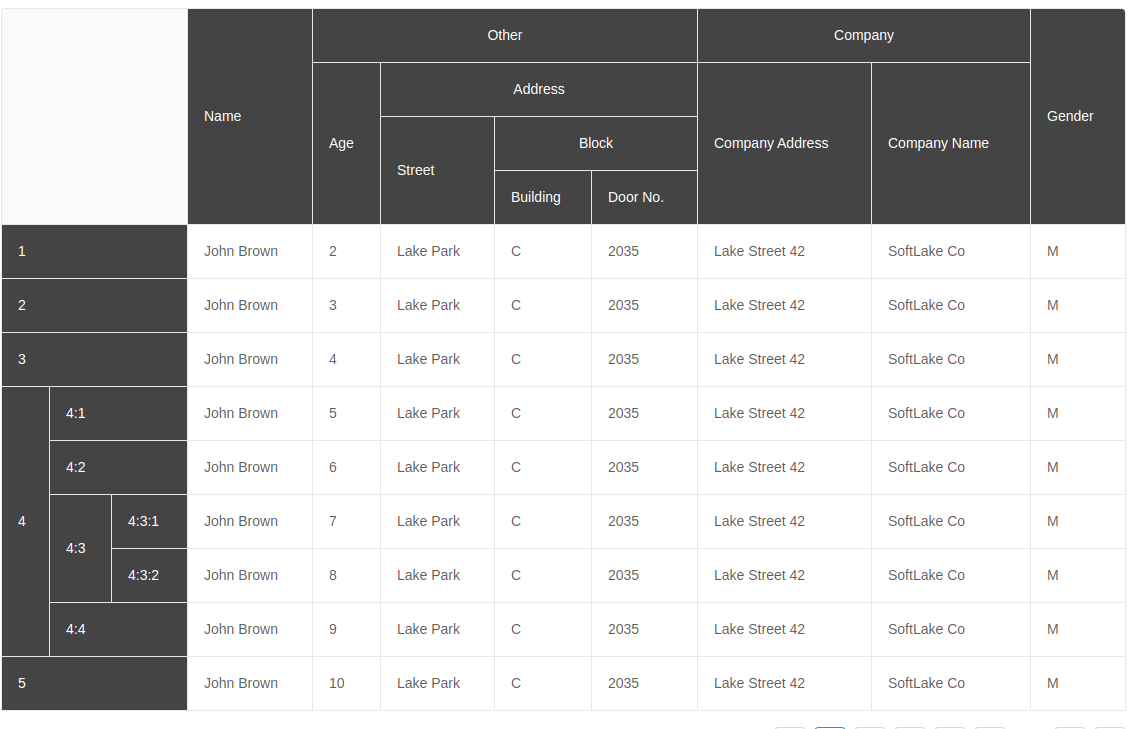 In my usecase I needed a table with grouped header, not only at the top of the table, but at the left side of it.