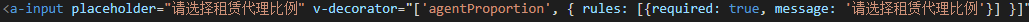 v-decorator="['agentProportion01', { rules: [ { required: true, message: '请输入商品分润代理比例', preserve: true } ] }]"