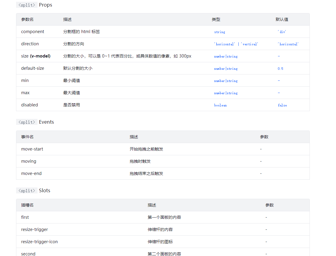 - [ ] I have searched the [issues](https://github.com/vueComponent/ant-design-vue/issues) of this repository and believe that this is not a duplicate. ### What problem does this feature solve? 将一个面板分割成两个可以调整宽度或高度的两部分。用direction控制分割方向。面板分割可以嵌套使用。 ### What does the proposed API look like? 参考https://arco.design/vue/component/split   <!-- generated by issue-helper. DO NOT REMOVE -->