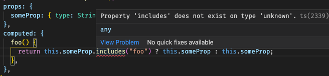 return this.someProp.includes("foo") ? this.someProp : this.someProp;
