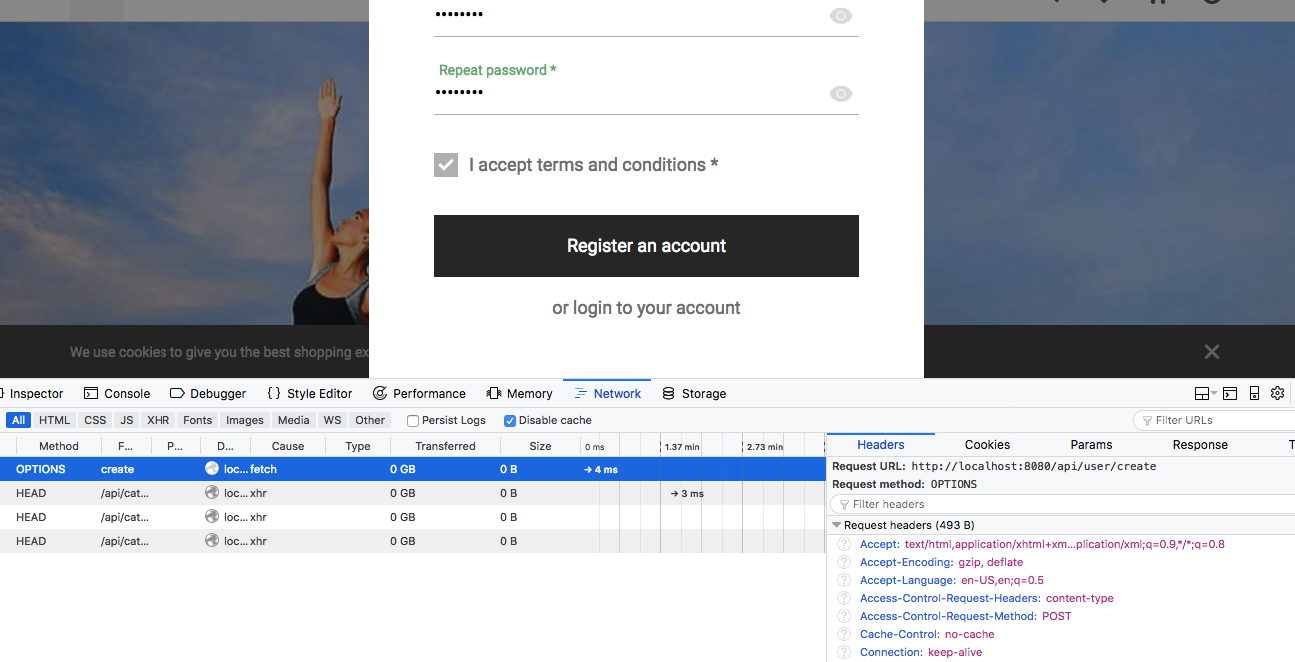There is not localhost string in local.cf but I see that vue-storefront still tries to connect localhost:8080