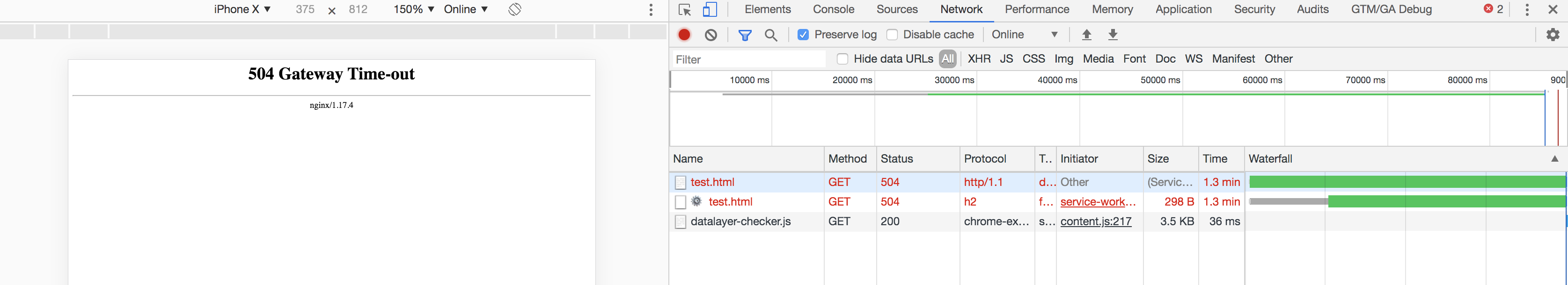 Access a random URL like https://demo.vuestorefront.io/test.html and you will have a timeout: