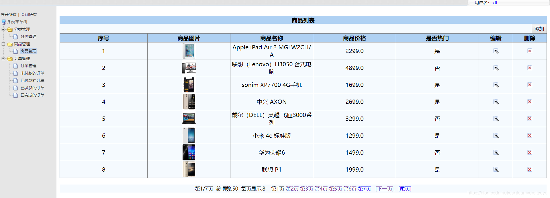 3.商品管理:上架下架商品,修改商品信息,分页展示商品信息