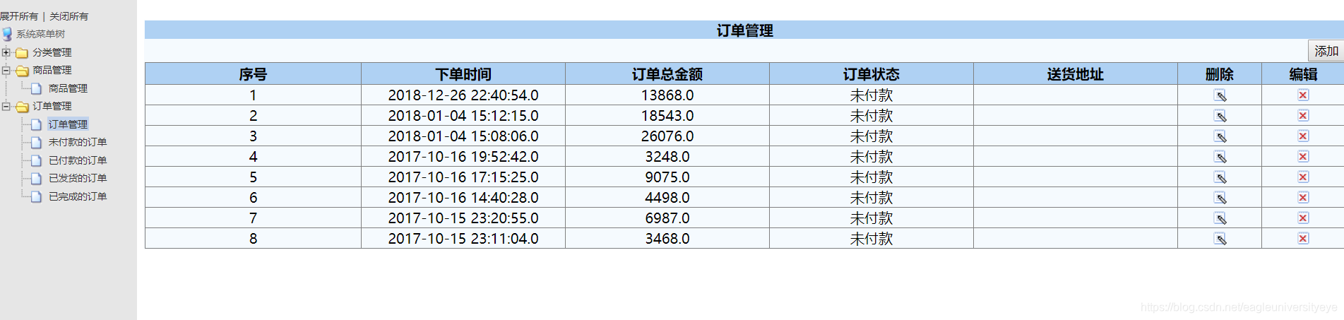 2.购物车管理:显示已加入购物车中的商品的信息,及商品总额,提供将商品从购物车中删除的功能及清空购物车功能,并可以将购物车提交生成订单