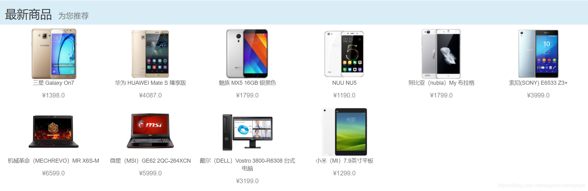 1.特殊商品展示:根据商品信息,筛选出热门商品和最新商品展示在首页