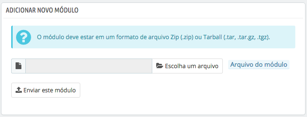 Após realizar o download da última versão (Clique aqui) faça o upload do arquivo no painel de controle da sua loja virtual PrestaShop.