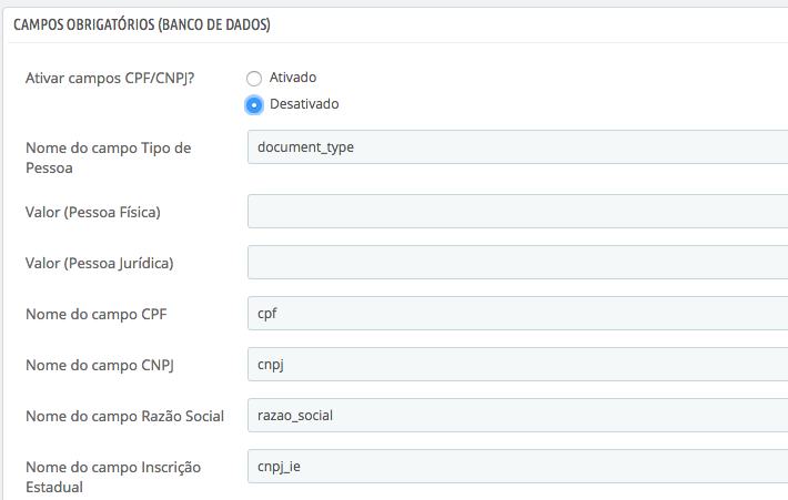 Caso você já possua outro módulo que insira estes campos, é necessário configurar o nome dos mesmos para que os dados sejam salvos de forma correta: