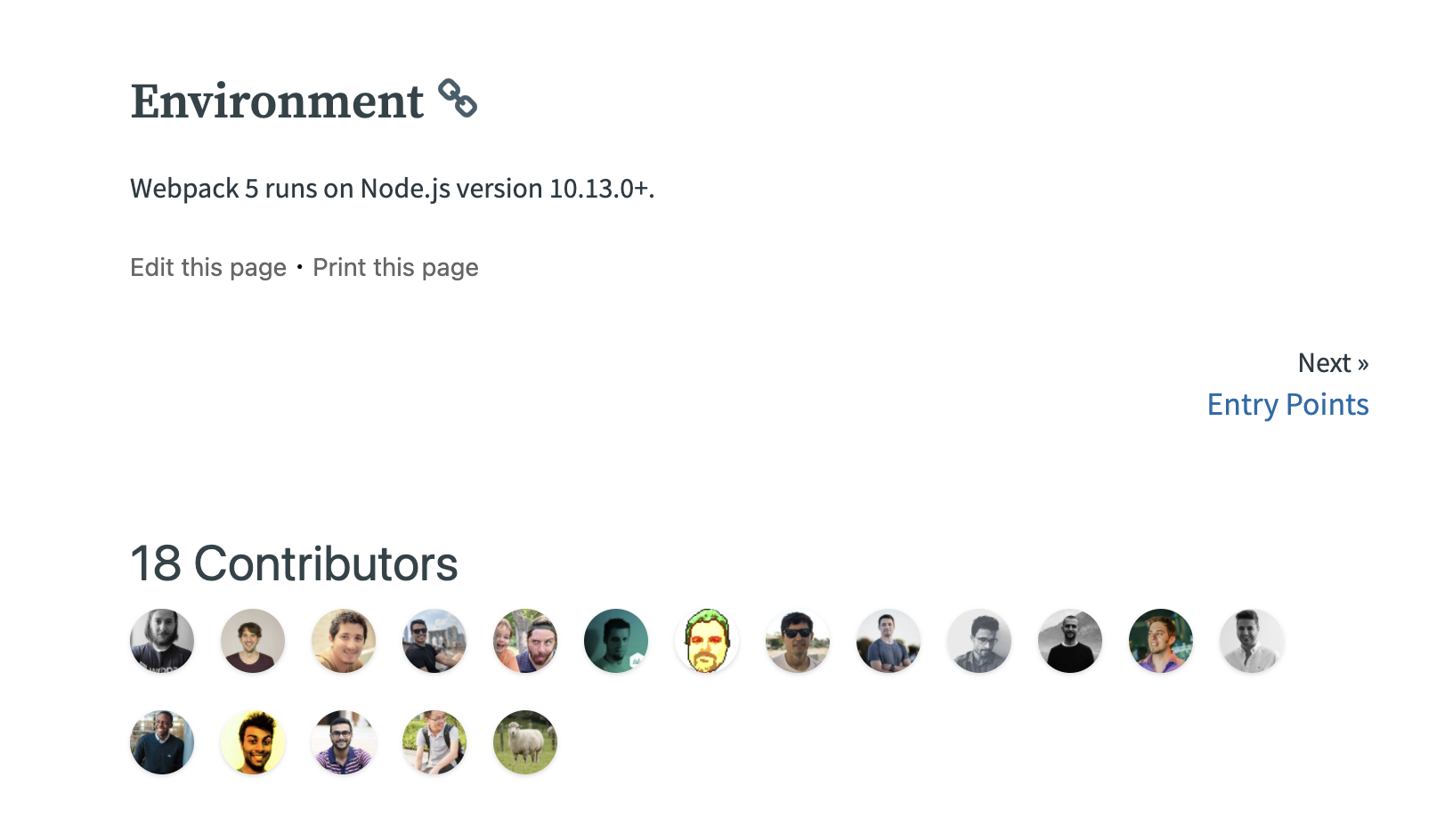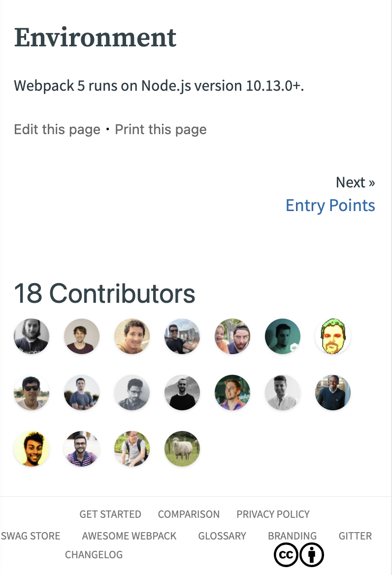 We have discussed whether to remove the contributors' section, most of us would like to keep it. And sokra proposed to show only small avatars similar to github #4441 (comment). And now I believe it's a good trade-off as the list won't go wild on mobile while keeping the whole contributors section:
