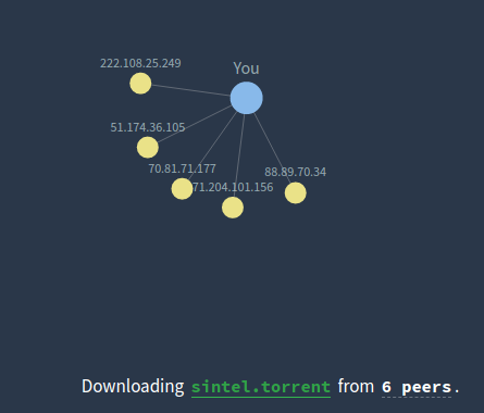 Only peer connected is self (screenshot is from Firefox on the same machine with uBlock Origin running).