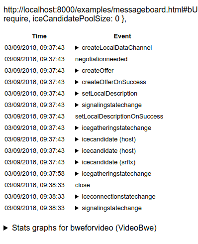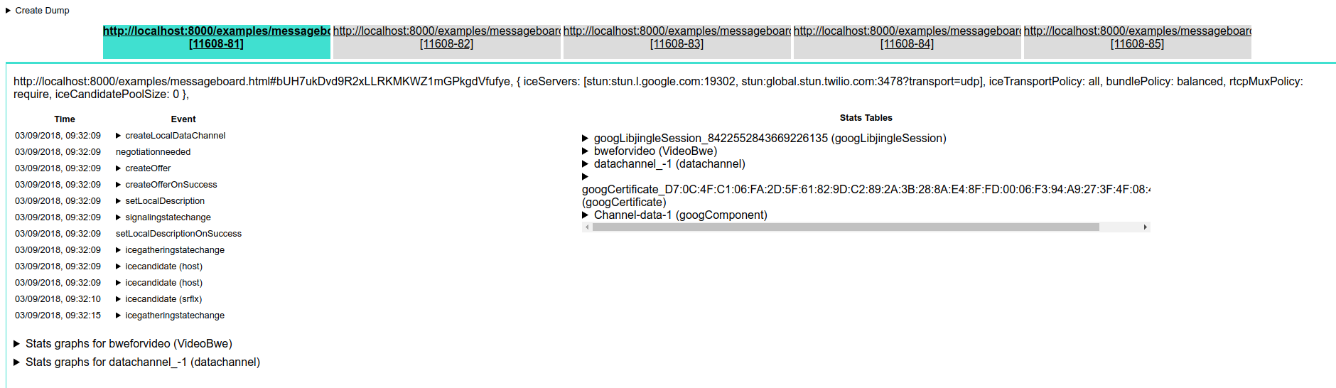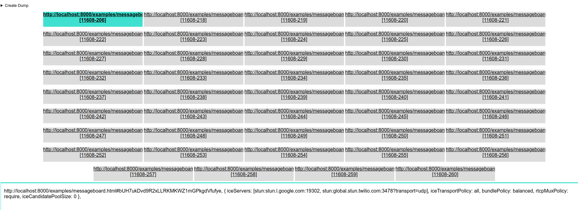 RTCPeerConnection limit - As refered to here, the maximum number of RTCPeerConnections is 256 (without a source though). This is quickly hit when the RTC offers to the trackers are generated. On other note 256 does not seem to be true, more like 30.