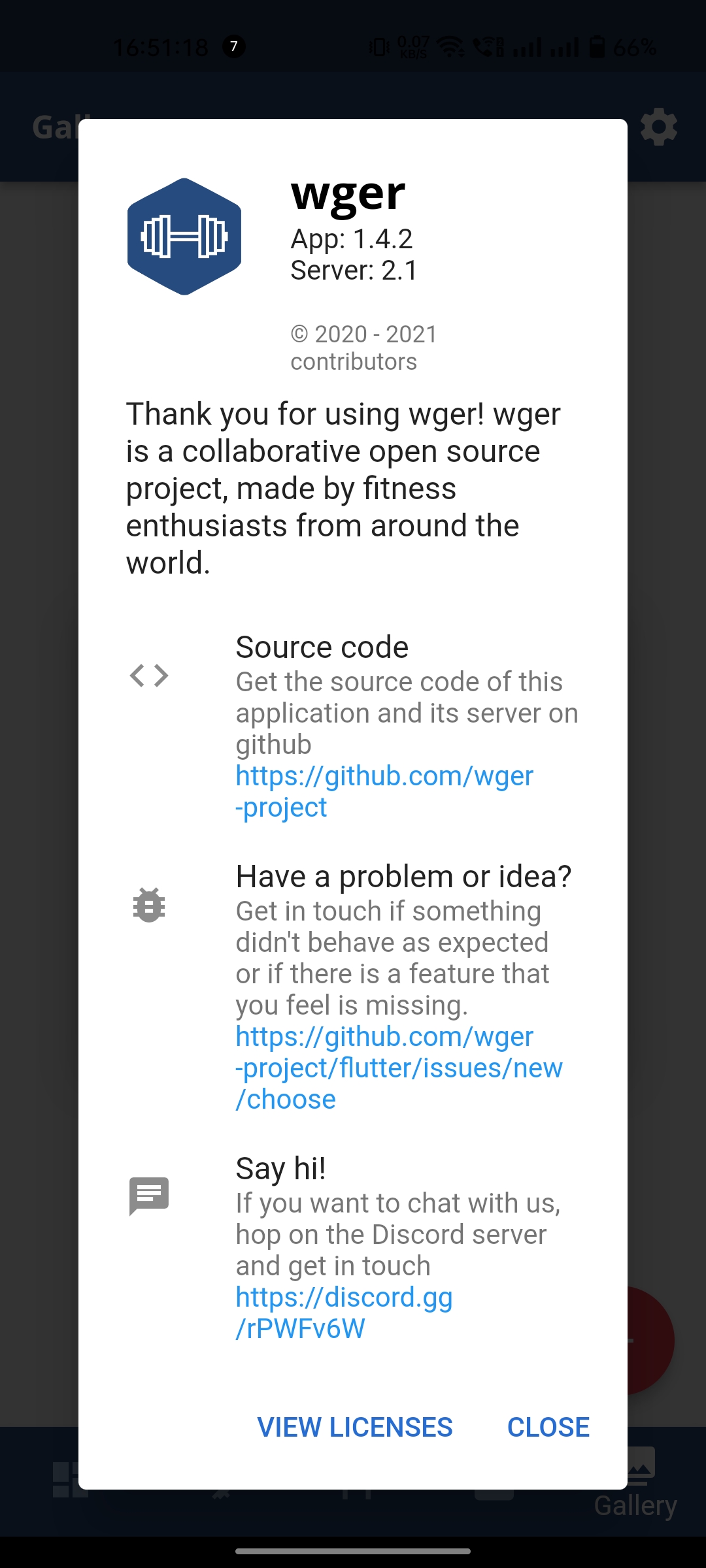 Right now, on clicking About Wger we get a dialog which looks like this: