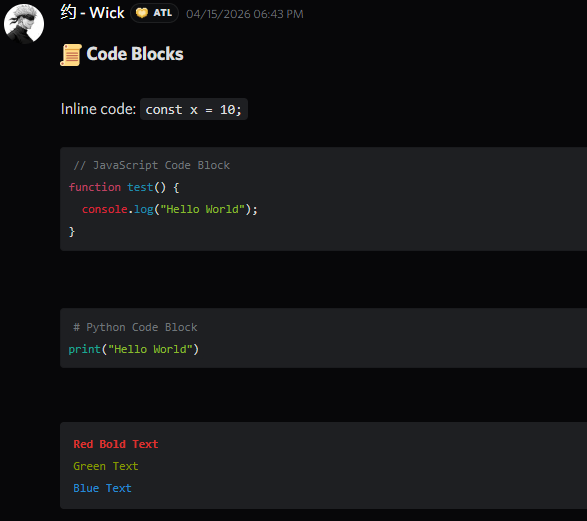 | π¨ ANSI Code Blocks | Full ANSI escape sequence rendering with colors and formatting |
