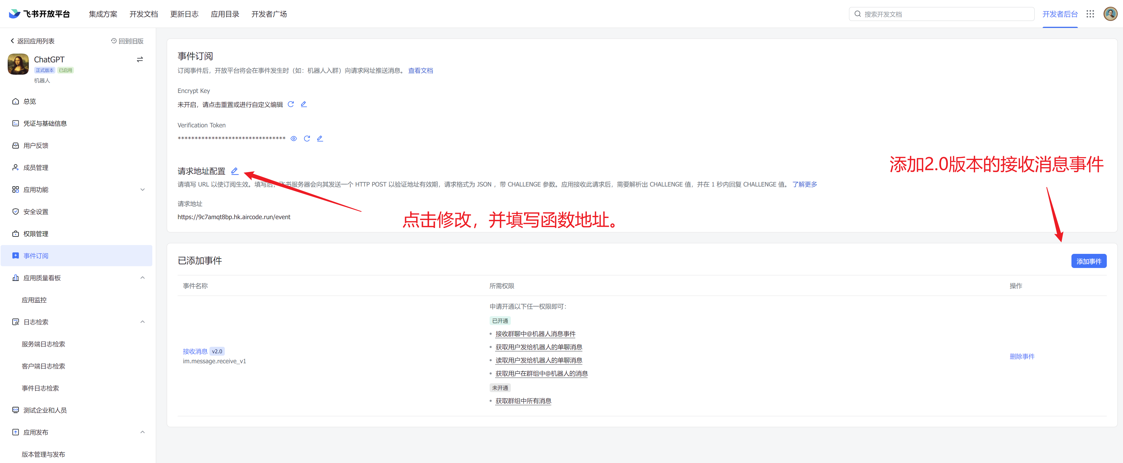 访问ChatGPT-Feishu/event.js at master · bestony/ChatGPT-Feishu (github.com),复制代码