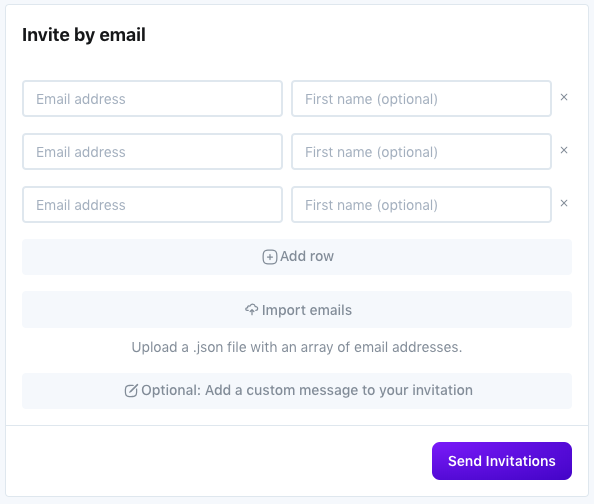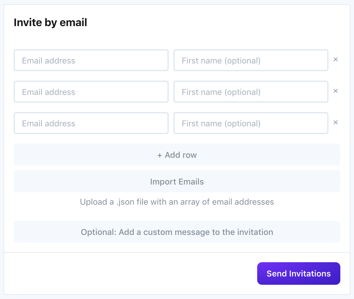 Adds ability to import JSON file with emails of users to be invited to community. Demo (note that UI is not polished, only the functionality):