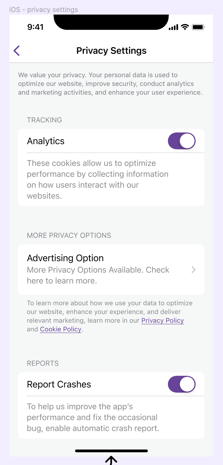 Thanks, @atorresveiga for the review! I agree with your comments. I've tried to iterate over the design to address them and make it similar to the rest of the privacy settings. It's not ideal and requires some debatable ideas like Because there are a few PRs in the pipeline, I'll go and merge this PR. But this targets the feature branch, so please feel free to comment here, and I'll address your comments in another PR. Thanks again!
